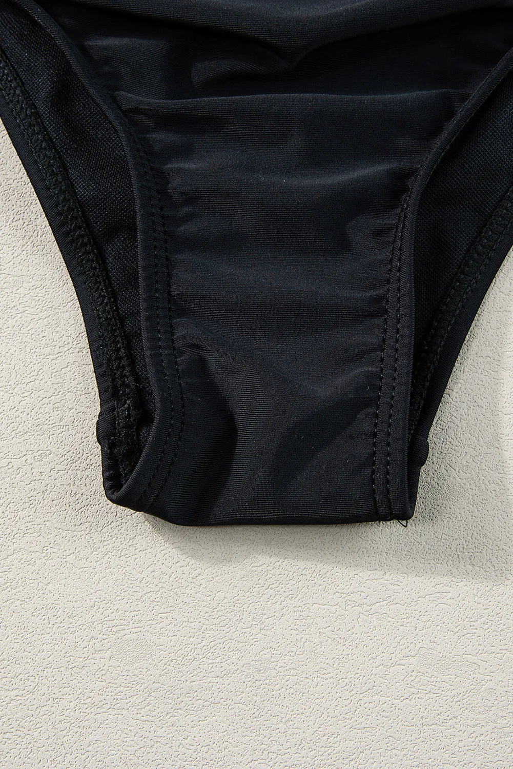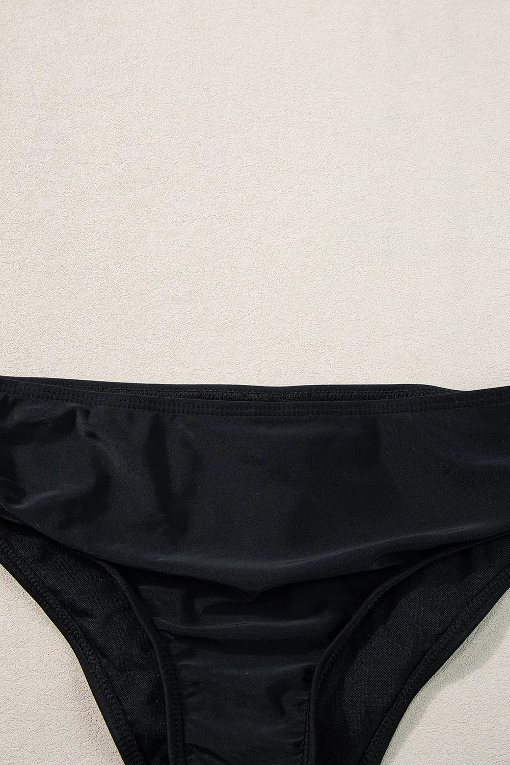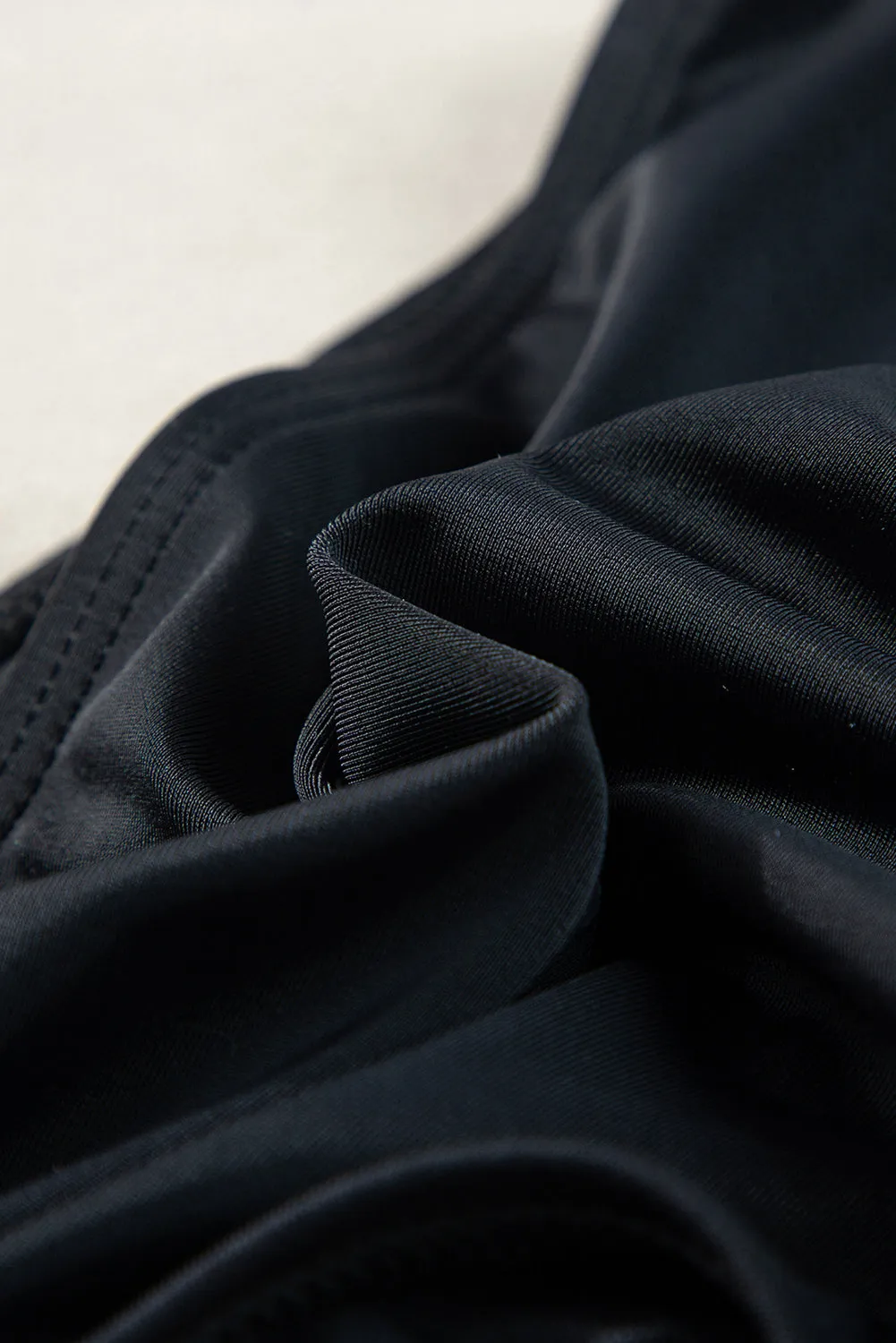 - Medium rise stretchy fit bikini bottom with ruched detail