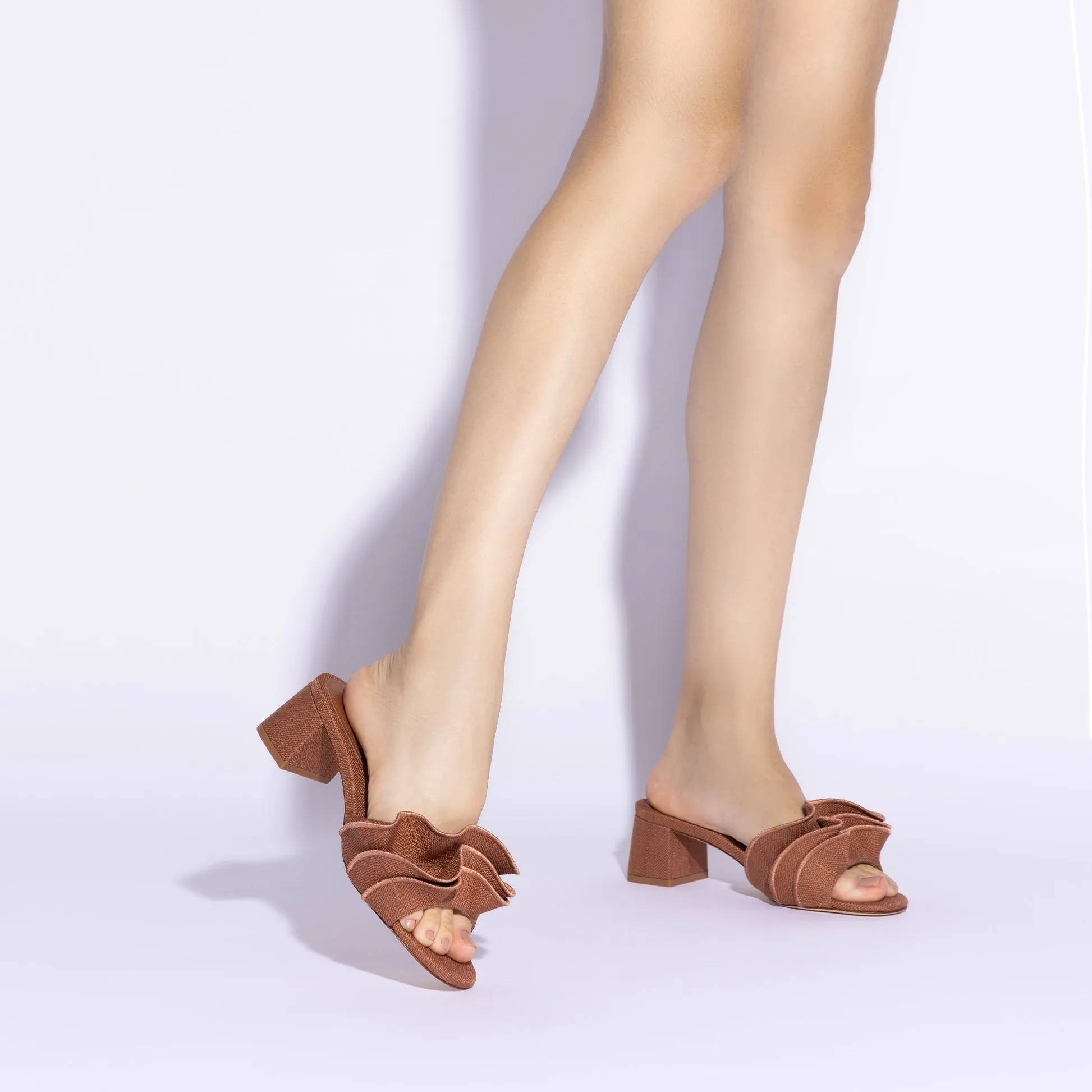 Brigitte Ruffle Mule In Caramel Raffia